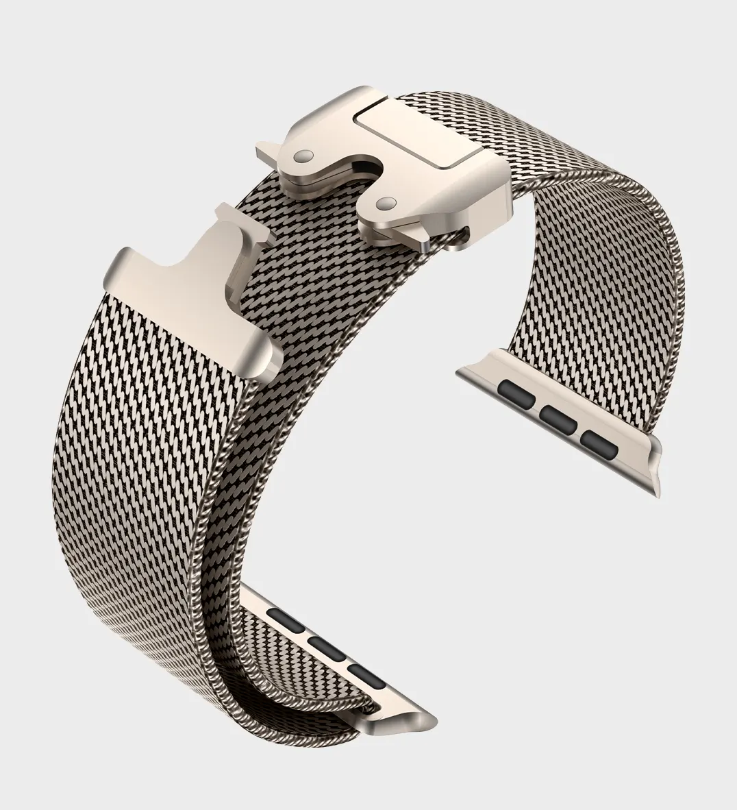 A diferencia de la correa Milanese tradicional que usa un cierre magnético, este modelo cuenta con un broche de seguridad ajustable de metal que proporciona un ajuste más firme para actividades intensas.